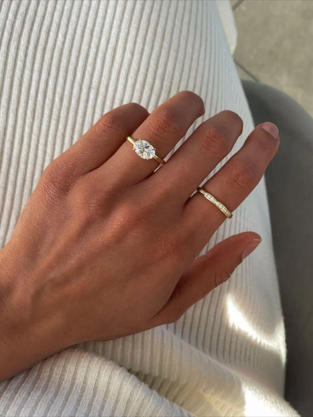 The Stacking Innovator: She loves how an east-west solitaire pairs uniquely with wedding bands, creating unexpected combinations.