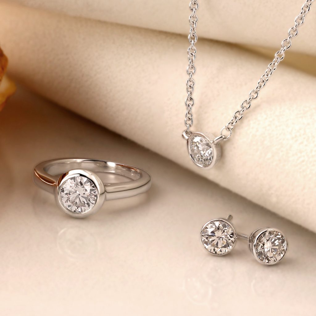 - Setting – Choose from white gold, yellow gold, rose gold, or platinum alternatives.
