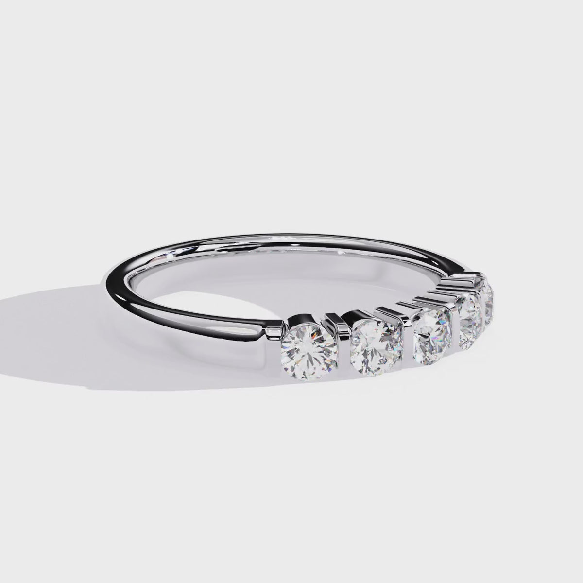 For those who love warm, vintage-inspired elegance, our five stone round diamond wedding band in yellow gold offers a timeless appeal. The rich hue of yellow gold enhances the brilliance of round-cut diamonds, making it a cherished keepsake for a lifetime.