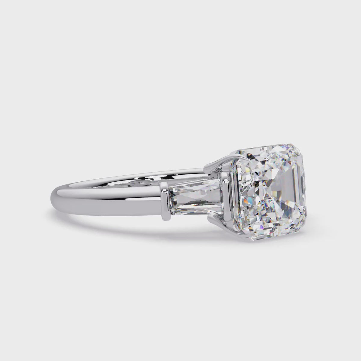 Asscher with Baguette Three Stone Engagement Ring – Timeless Sophistication