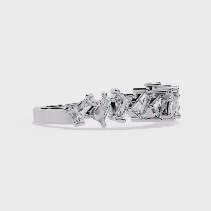 Baguette Half Eternity Band is the perfect blend of classic and contemporary design, featuring sleek step-cut diamonds set halfway around the band. This style offers brilliance while ensuring a comfortable fit, making it ideal for everyday wear.