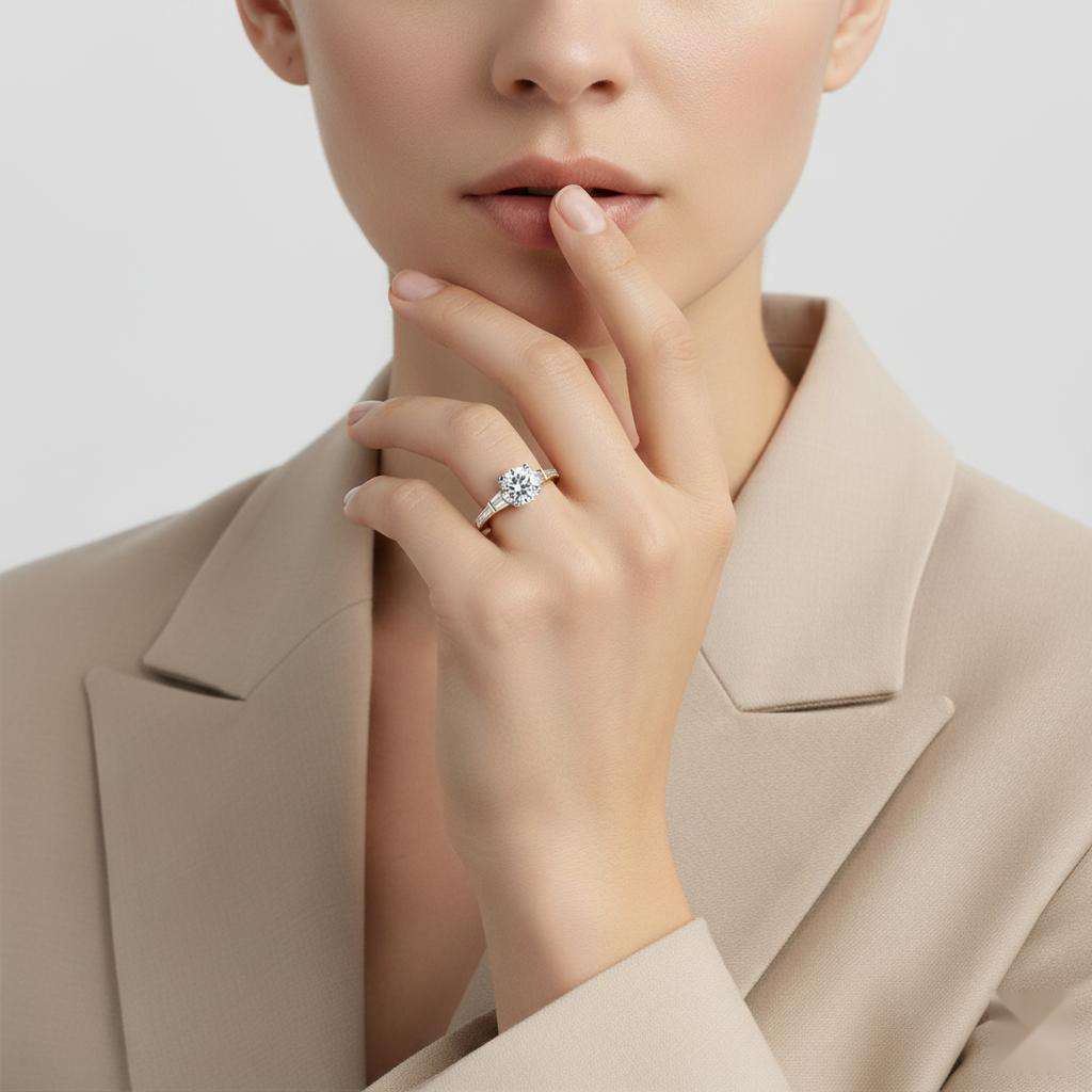 Crafted with lab-grown diamonds or moissanite, this ring is available in 14K & 18K gold (white, yellow, or rose) offering a luxurious and customizable experience.
