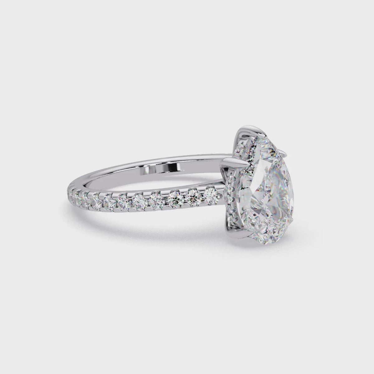 A pear-shaped engagement ring with a hidden halo is the perfect choice for someone seeking something distinctive, elegant, and full of meaning. Its mix of sophistication and soft sparkle makes it a standout style—romantic, refined, and effortlessly beautiful.
