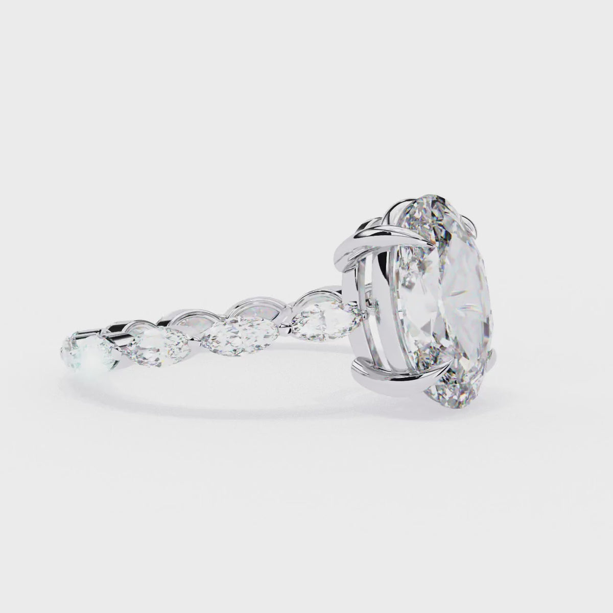 The Oval Solitaire with Full Eternity Engagement Ring is a timeless masterpiece that blends classic elegance with modern brilliance. Featuring a stunning oval cut center stone, this ring is designed to maximize sparkle and sophistication. The full eternity band, adorned with shimmering accent stones, adds a continuous touch of radiance, symbolizing eternal love and commitment.