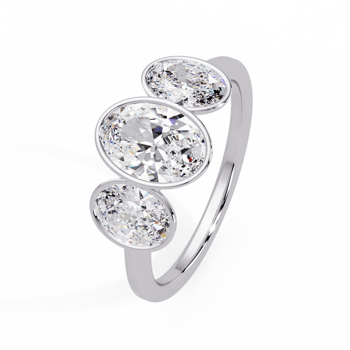 Oval Three Stone Bezel Set Engagement Ring