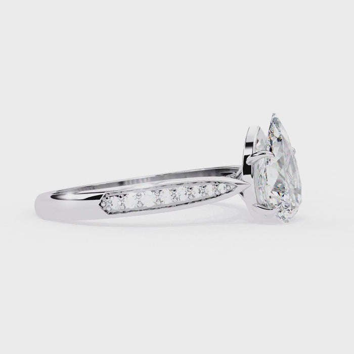 Pear Hidden Accent With Pointer Band Engagement Ring