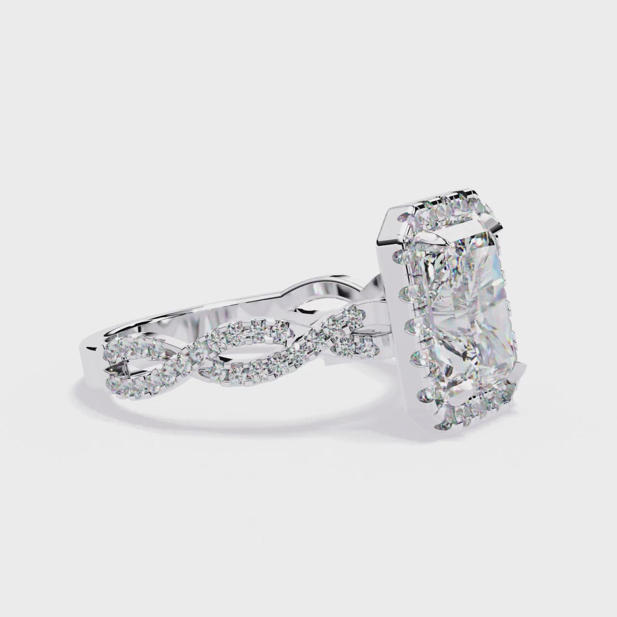 A mesmerizing blend of brilliance and elegance, our Radiant Halo with Twisted Shank Engagement Ring is designed for those who seek a unique yet timeless symbol of love.