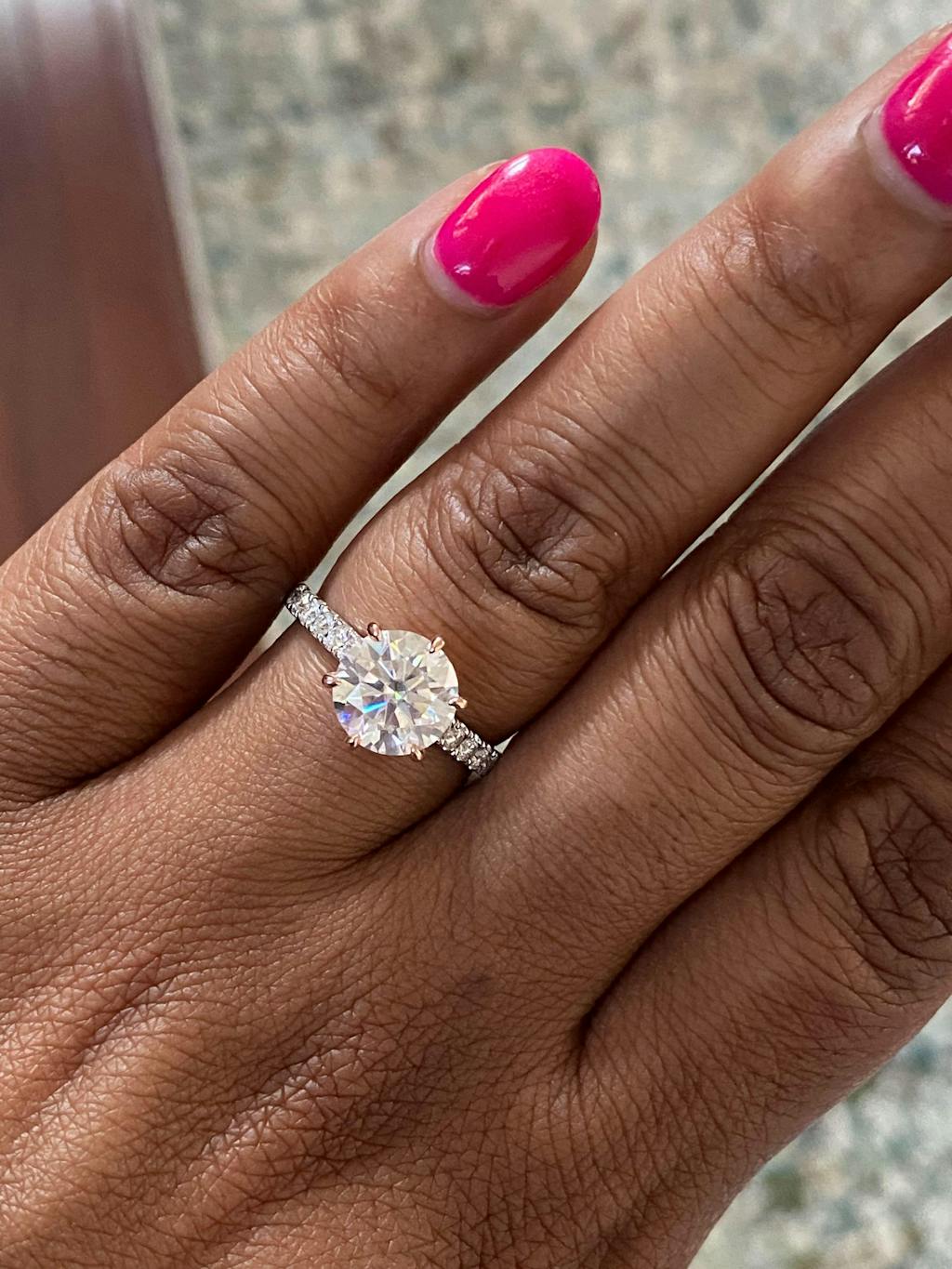 Modern Yet Classic: The round center stone paired with a hidden halo setting offers the perfect mix of timeless tradition and contemporary sophistication.