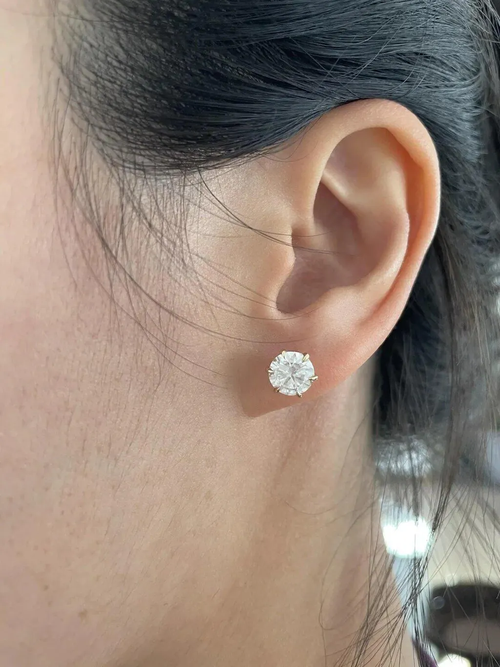 In the context of round stud earrings, "multi-prong" typically refers to settings that use more than the standard four prongs. The most common variations are six-prong settings and eight-prong settings, which are essentially double claw prongs at each of the four cardinal points.