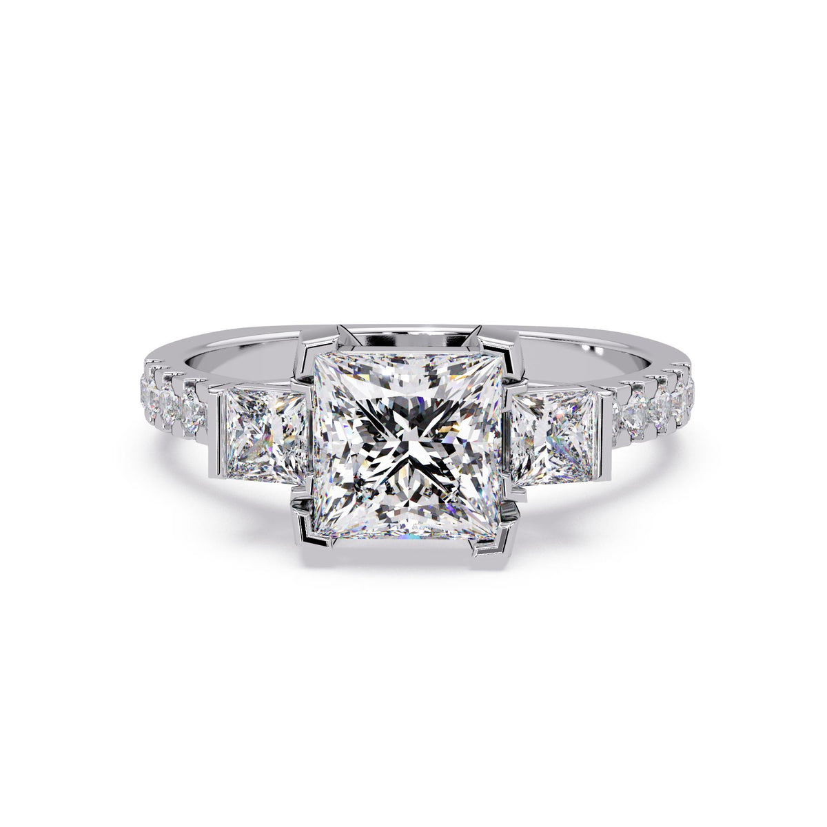 Experience the perfect blend of brilliance, symmetry, and symbolism with our Three Stone Princess Cut Engagement Ring. Designed for modern elegance, this ring features a striking centerpiece princess-cut stone paired with two matching side stones—representing your past, present, and future together.