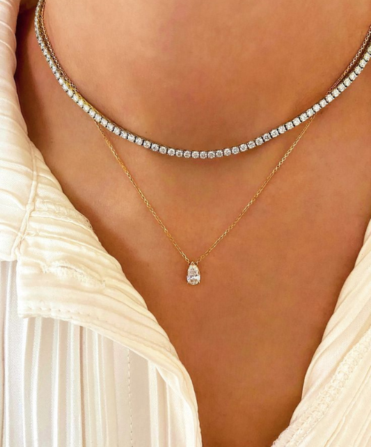 Pear Diamond Tennis Necklace Pear Moissanite Diamond Tennis Necklace